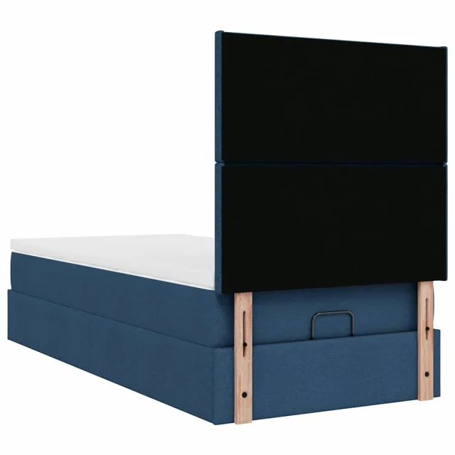 vidaXL Otomanska postelja z vzmetnico moder 90x200 cm blago