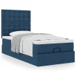 vidaXL Otomanska postelja z vzmetnico moder 90x200 cm blago
