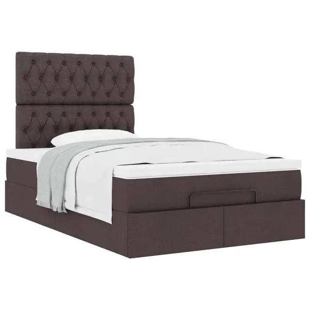 vidaXL Otomanska postelja z vzmetnico rjav 120x200 cm blago