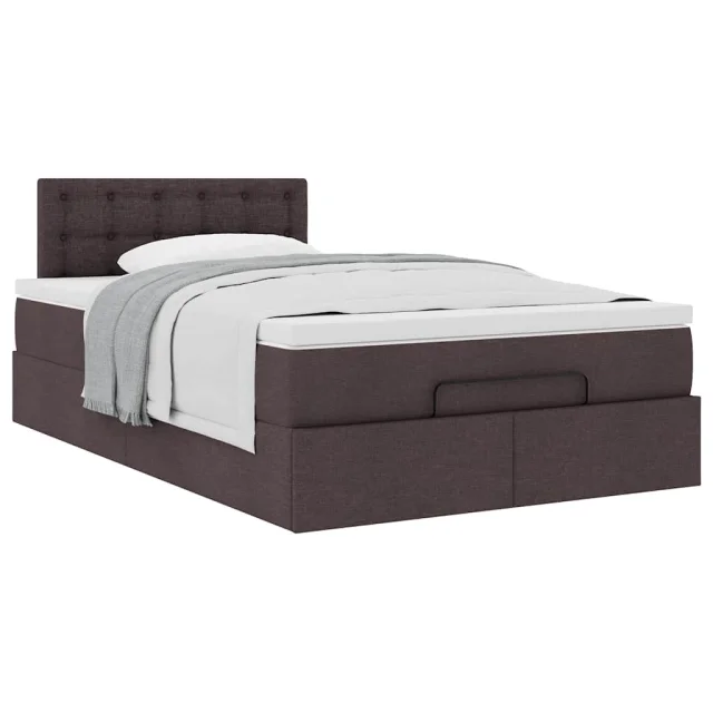 vidaXL Otomanska postelja z vzmetnico rjav 120x200 cm blago