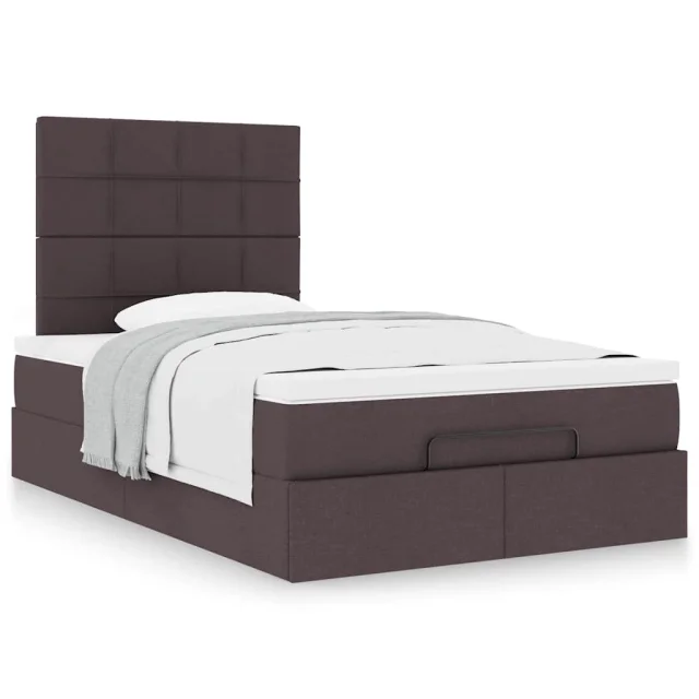 vidaXL Otomanska postelja z vzmetnico rjav 120x200 cm blago