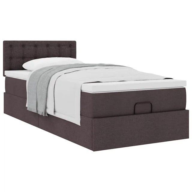 vidaXL Otomanska postelja z vzmetnico rjav 90x200 cm blago