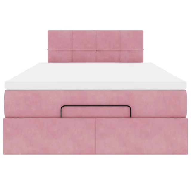 vidaXL Otomanska postelja z vzmetnico roza 120x190 cm žamet