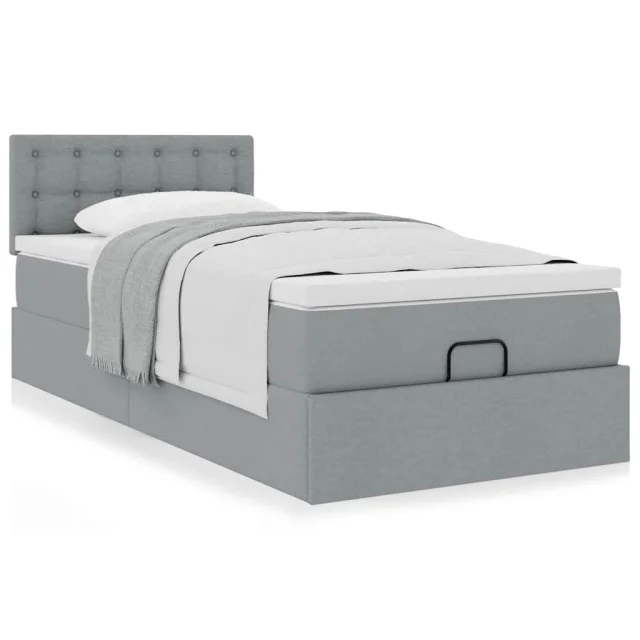 vidaXL Otomanska postelja z vzmetnico siv 100x200 cm blago