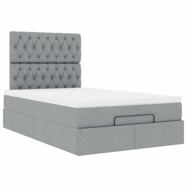 vidaXL Otomanska postelja z vzmetnico siv 120x190 cm blago