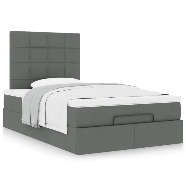 vidaXL Otomanska postelja z vzmetnico siv 120x190 cm blago