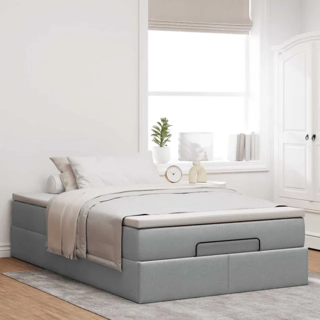 vidaXL Otomanska postelja z vzmetnico siv 120x190 cm blago