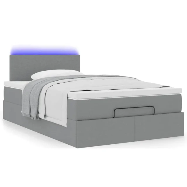 vidaXL Otomanska postelja z vzmetnico siv 120x190 cm blago