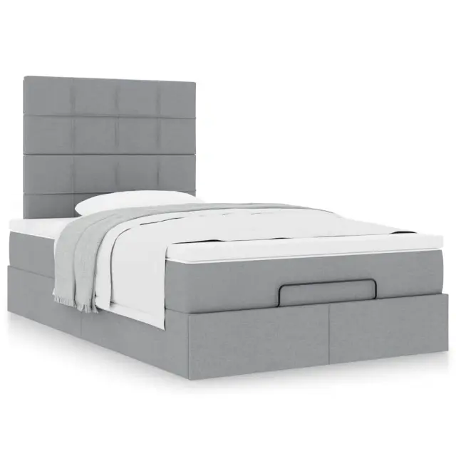 vidaXL Otomanska postelja z vzmetnico siv 120x190 cm blago