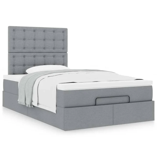 vidaXL Otomanska postelja z vzmetnico siv 120x190 cm blago