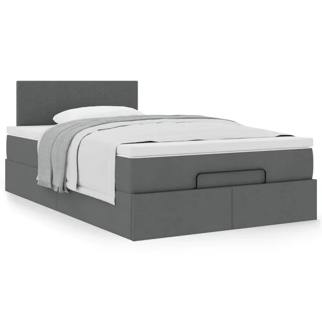 vidaXL Otomanska postelja z vzmetnico siv 120x190 cm blago