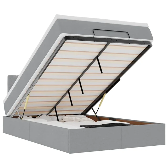 • Veliko prostora za shranjevanje pod posteljo: Zahvaljujoč hidravličnemu dvižnemu mehanizmu je pod posteljnim okvirjem na voljo veliko prostora za shranjevanje pod posteljo, kar povečuje prostor, ne da bi zavzemal dodatno talno površino. S preprostim potegom ročaja se podnožje z letvami gladko dvigne, tako da lahko hitro in brez napora poberete svoje predmete.