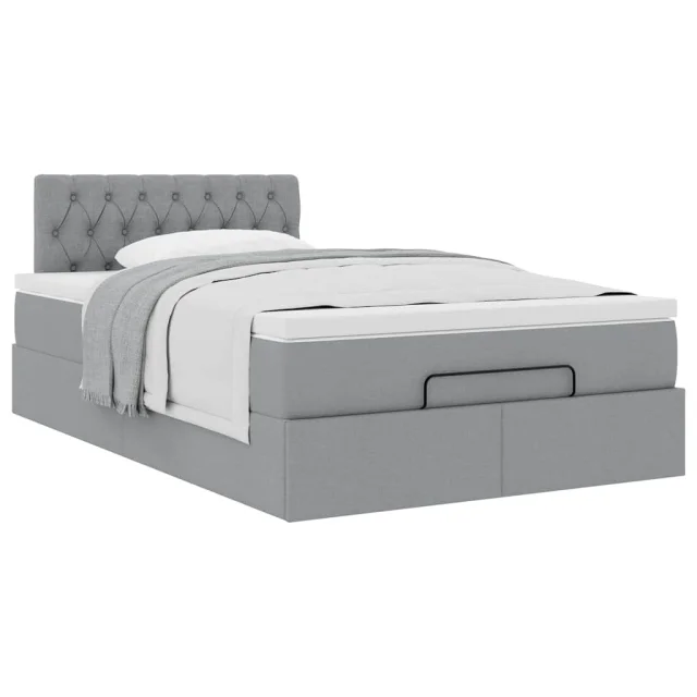 vidaXL Otomanska postelja z vzmetnico siv 120x190 cm blago