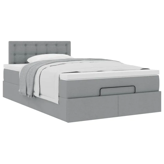vidaXL Otomanska postelja z vzmetnico siv 120x190 cm blago