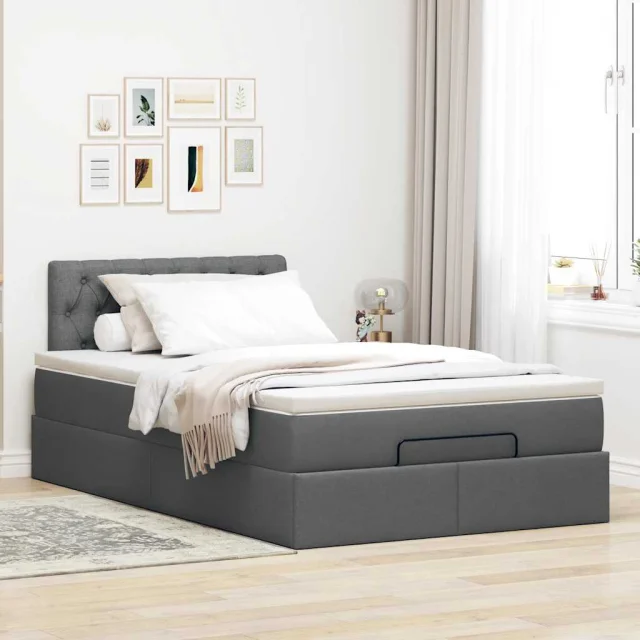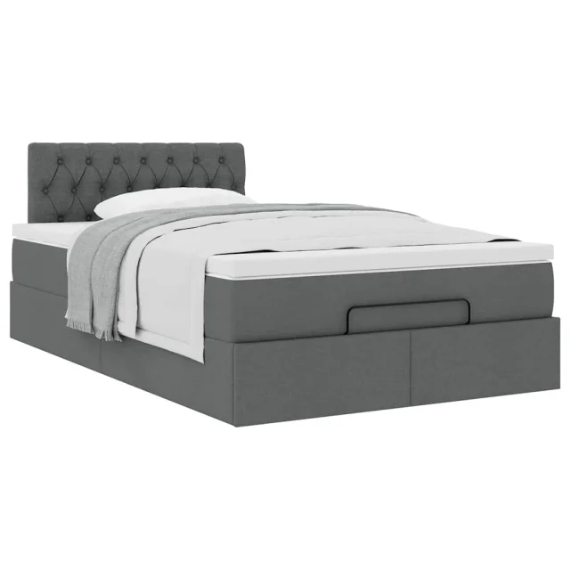 vidaXL Otomanska postelja z vzmetnico siv 120x200 cm blago