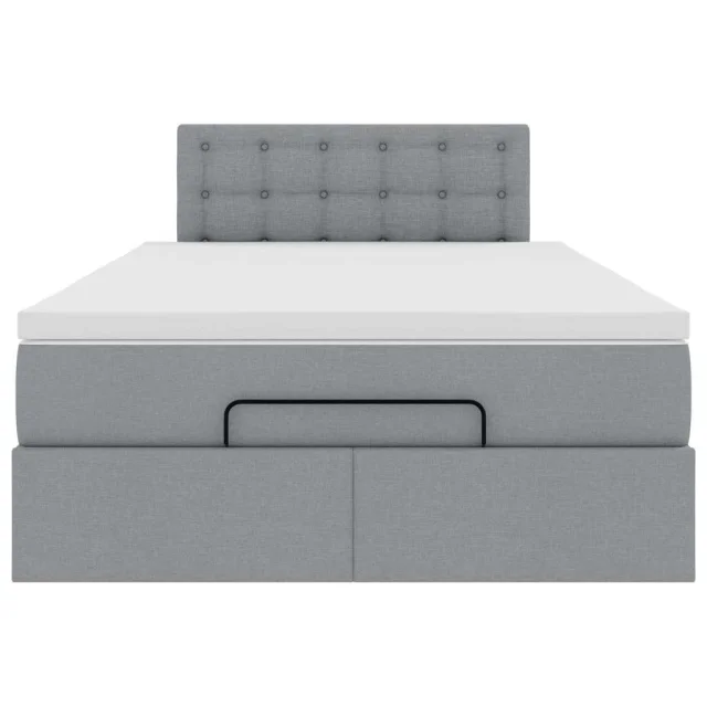 vidaXL Otomanska postelja z vzmetnico siv 120x200 cm blago