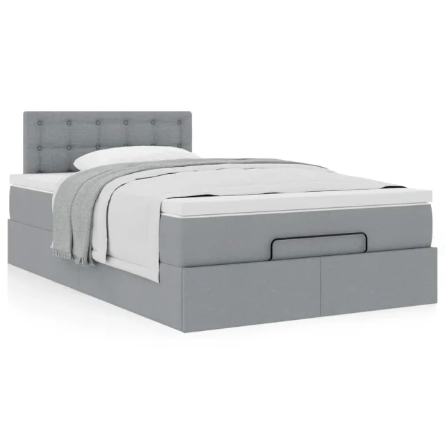 vidaXL Otomanska postelja z vzmetnico siv 120x200 cm blago