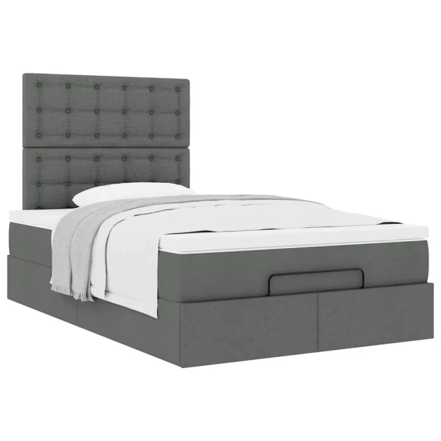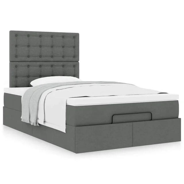vidaXL Otomanska postelja z vzmetnico siv 120x200 cm blago