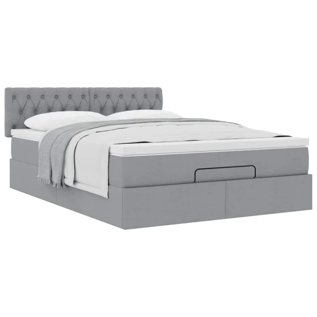 vidaXL Otomanska postelja z vzmetnico siv 140x190 cm blago