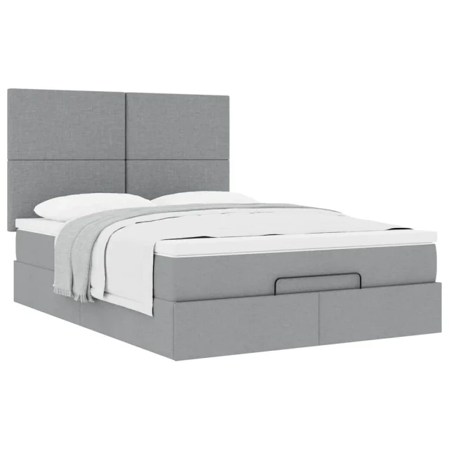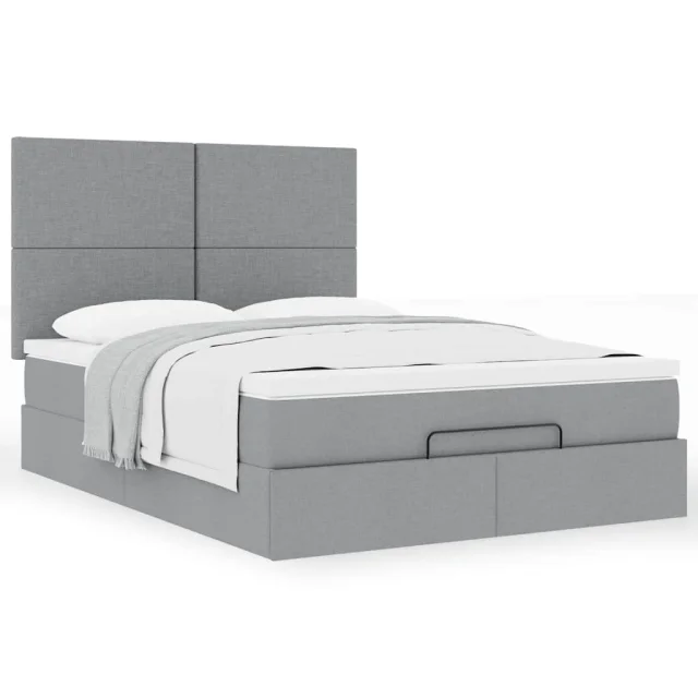 vidaXL Otomanska postelja z vzmetnico siv 140x190 cm blago