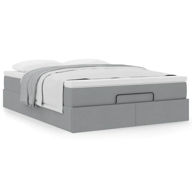 vidaXL Otomanska postelja z vzmetnico siv 140x190 cm blago
