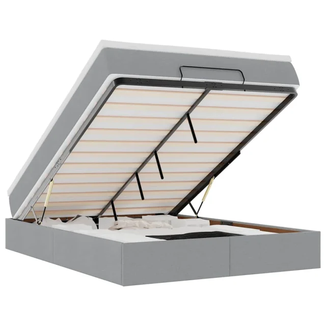 • Veliko prostora za shranjevanje pod posteljo: Zahvaljujoč hidravličnemu dvižnemu mehanizmu je pod posteljnim okvirjem na voljo veliko prostora za shranjevanje pod posteljo, kar povečuje prostor, ne da bi zavzemal dodatno talno površino. S preprostim potegom ročaja se podnožje z letvami gladko dvigne, tako da lahko hitro in brez napora poberete svoje predmete.