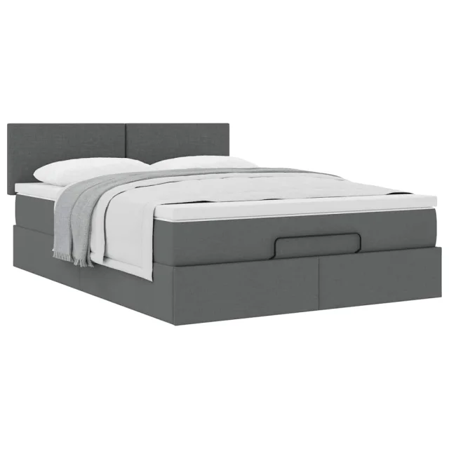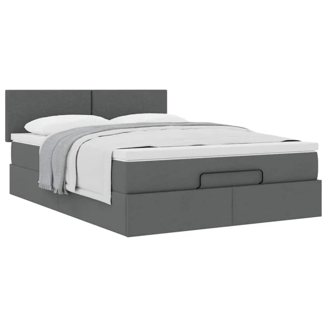 vidaXL Otomanska postelja z vzmetnico siv 140x200 cm blago