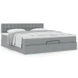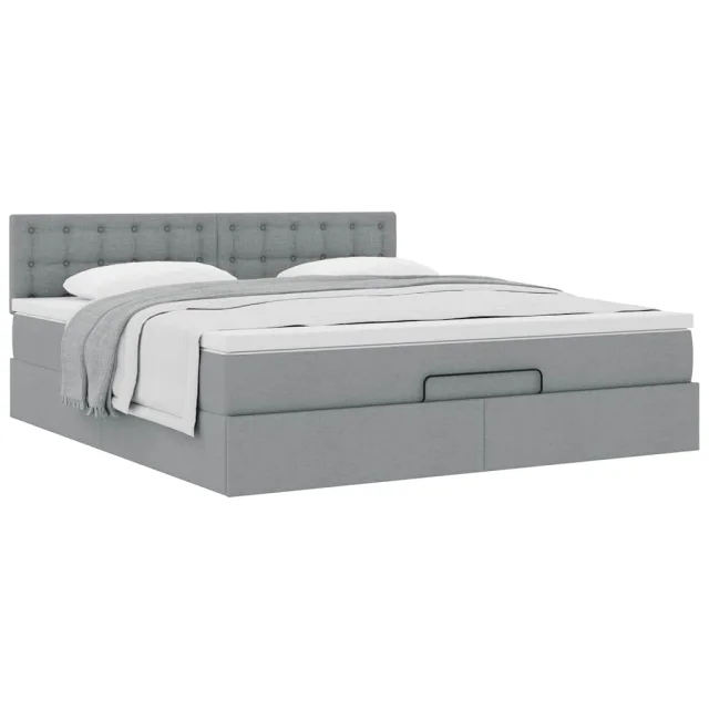 vidaXL Otomanska postelja z vzmetnico siv 160x200 cm blago