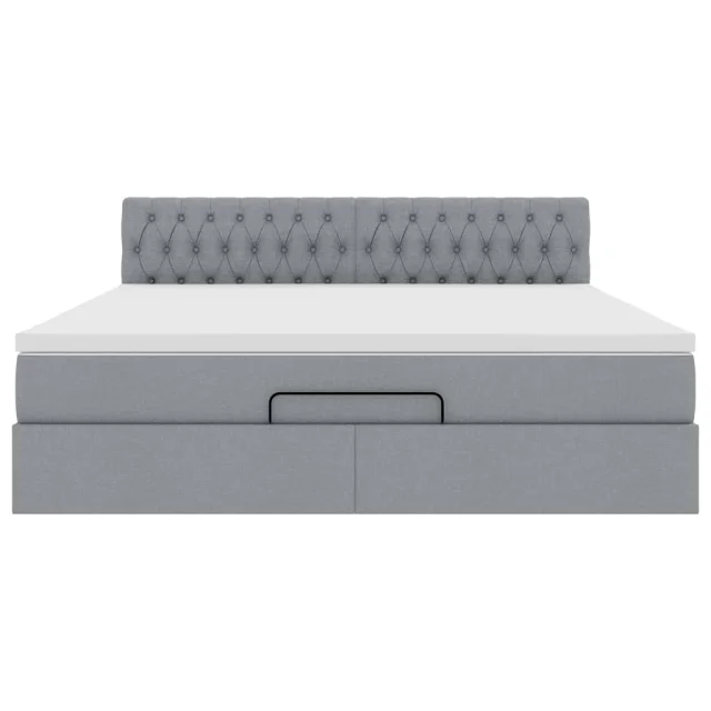 vidaXL Otomanska postelja z vzmetnico siv 160x200 cm blago