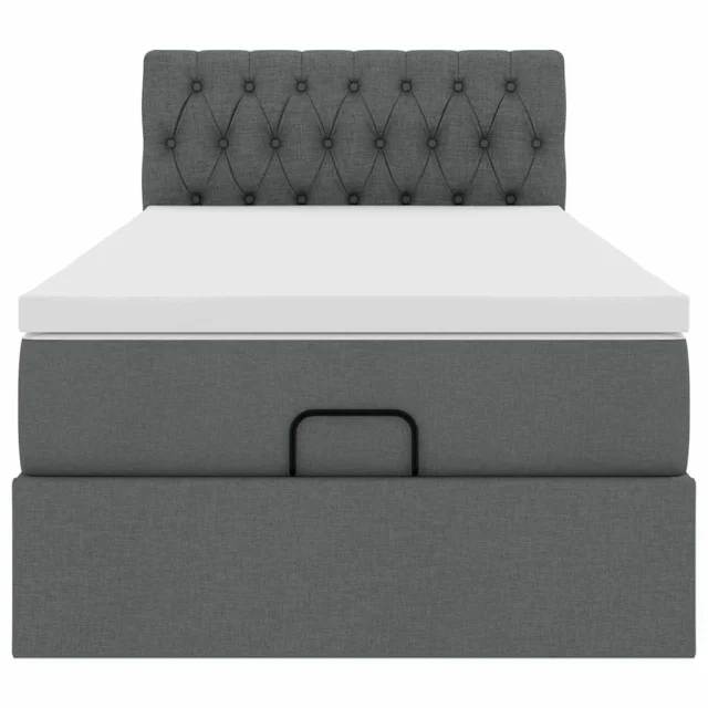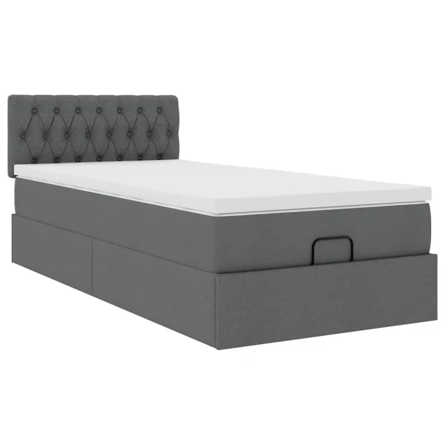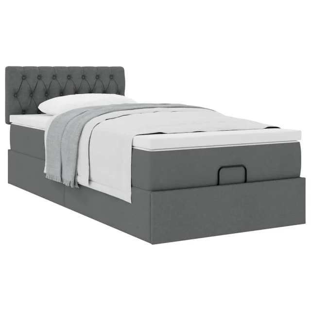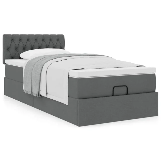 vidaXL Otomanska postelja z vzmetnico siv 90x200 cm blago