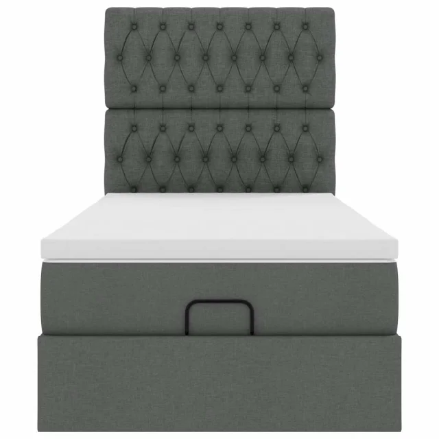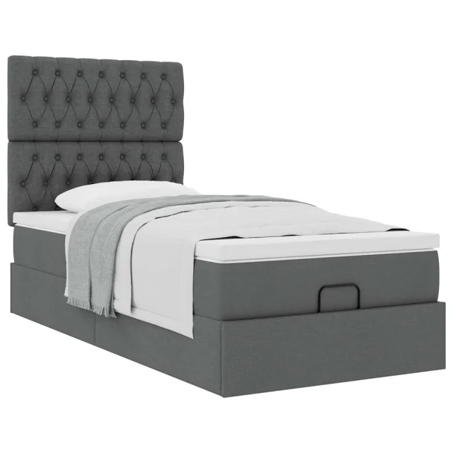 vidaXL Otomanska postelja z vzmetnico siv 90x200 cm blago