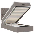 • Veliko prostora za shranjevanje pod posteljo: Zahvaljujoč hidravličnemu dvižnemu mehanizmu je pod posteljnim okvirjem na voljo veliko prostora za shranjevanje pod posteljo, kar povečuje prostor, ne da bi zavzemal dodatno talno površino. S preprostim potegom ročaja se podnožje z letvami gladko dvigne, tako da lahko hitro in brez napora poberete svoje predmete.