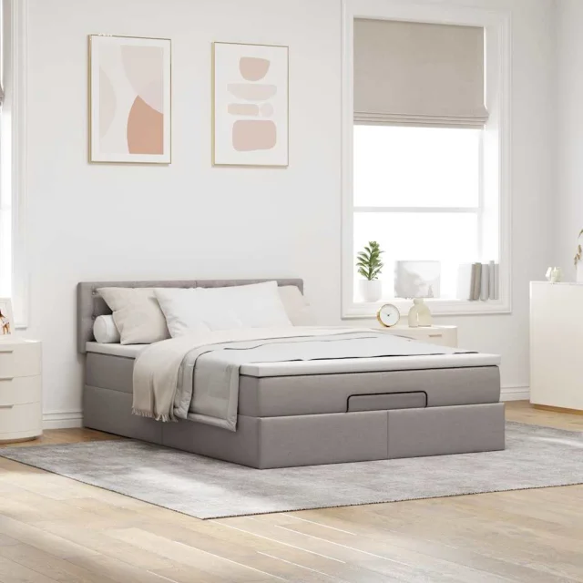 vidaXL Otomanska postelja z vzmetnico taupe 140x200 cm blago