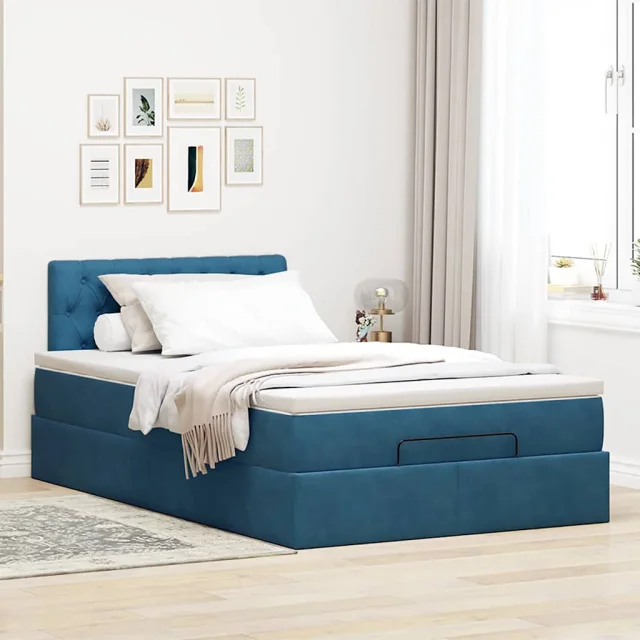 vidaXL Otomanska postelja z vzmetnico temno modra 120x190 cm žamet