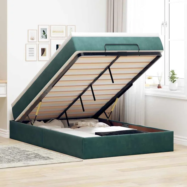 • Veliko prostora za shranjevanje pod posteljo: Zahvaljujoč hidravličnemu dvižnemu mehanizmu je pod posteljnim okvirjem na voljo veliko prostora za shranjevanje pod posteljo, kar povečuje prostor, ne da bi zavzemal dodatno talno površino. S preprostim potegom ročaja se podnožje z letvami gladko dvigne, tako da lahko hitro in brez napora poberete svoje predmete.