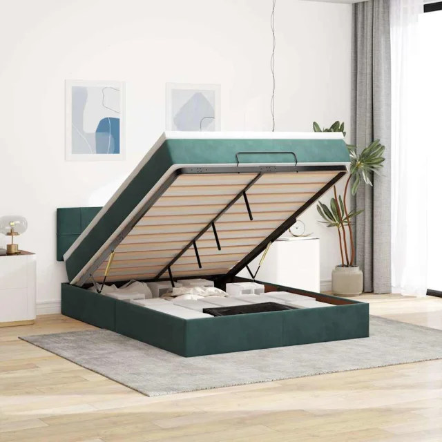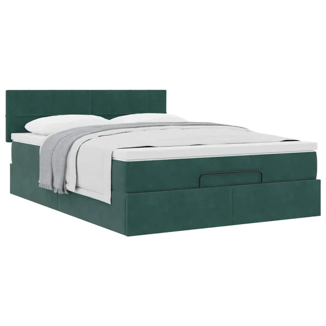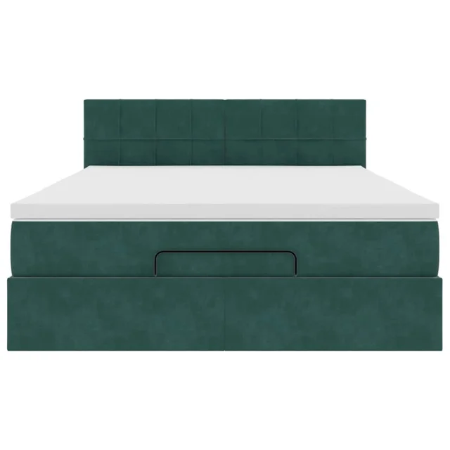 vidaXL Otomanska postelja z vzmetnico temno zelena 140x200 cm žamet