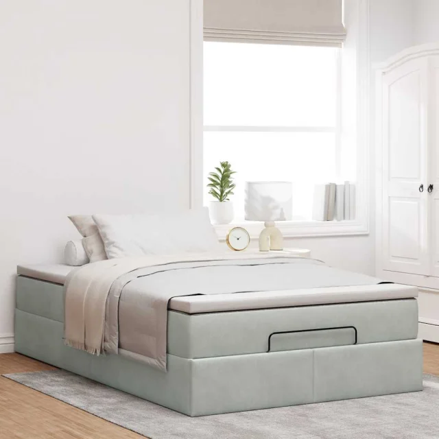 vidaXL Otomanski postelja z vzmetnico svetlo siv 120x190 cm žamet