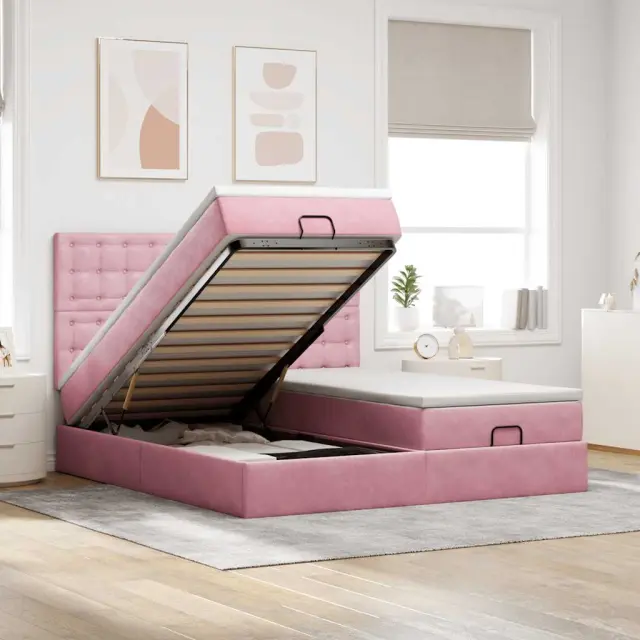vidaXL Otomanski posteljni okvir z vzmetnicami roza 160x200cm žamet
