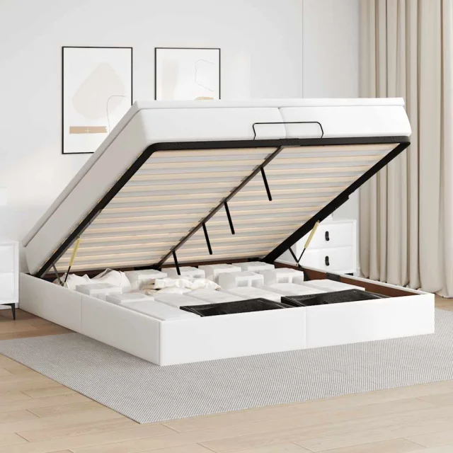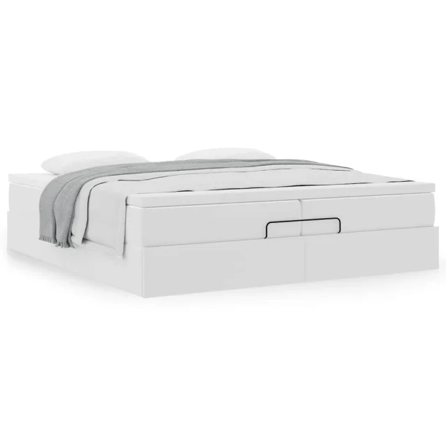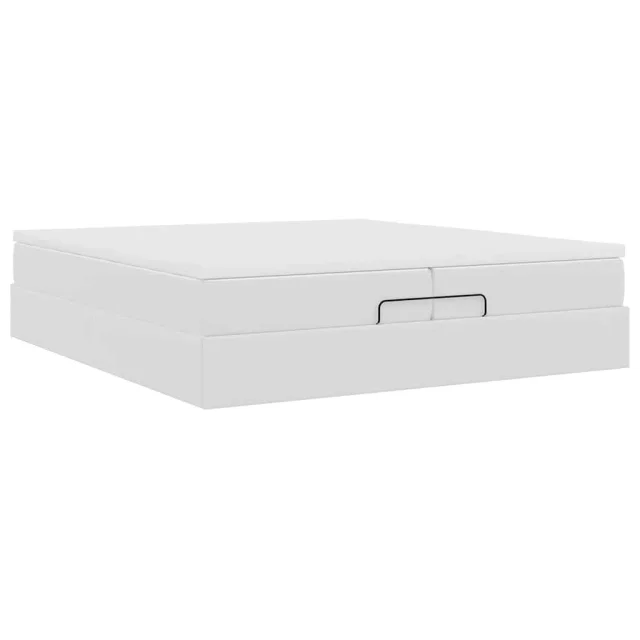 vidaXL Otomanski posteljni okvir z vzmetnicami bel 200x200cm um. usnje
