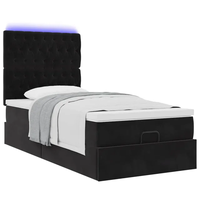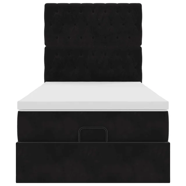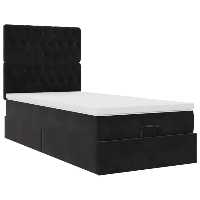 vidaXL Otomanski posteljni okvir z vzmetnicami črn 100x200cm žamet