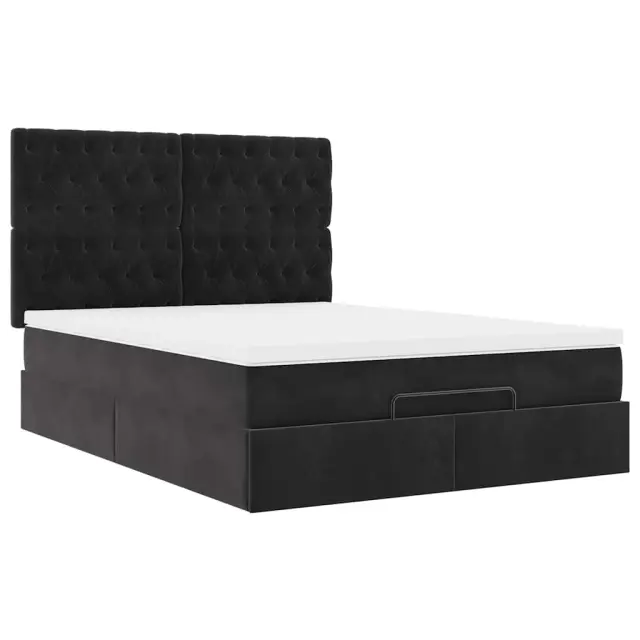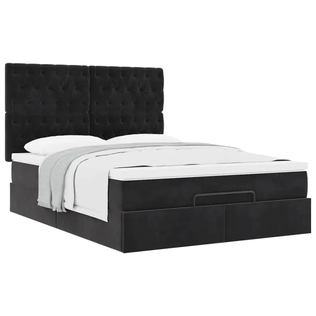 vidaXL Otomanski posteljni okvir z vzmetnicami črn 140x190cm žamet