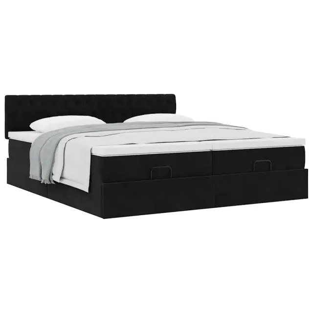 vidaXL Otomanski posteljni okvir z vzmetnicami črn 160x200 cm žamet