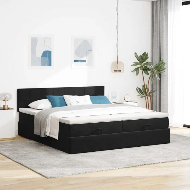 S tem okvirjem za posteljo otoman z ležiščem lahko uživate v mirnem spancu! Ponuja vam rešitev za shranjevanje in udobno spanje.