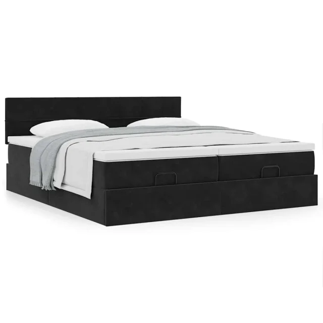vidaXL Otomanski posteljni okvir z vzmetnicami črn 160x200 cm žamet