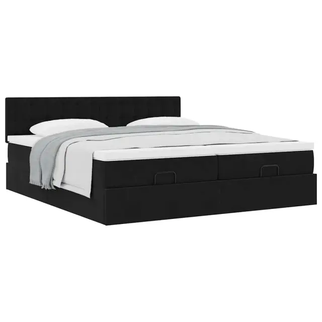 vidaXL Otomanski posteljni okvir z vzmetnicami črn 160x200 cm žamet