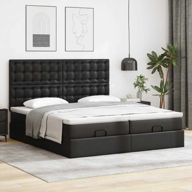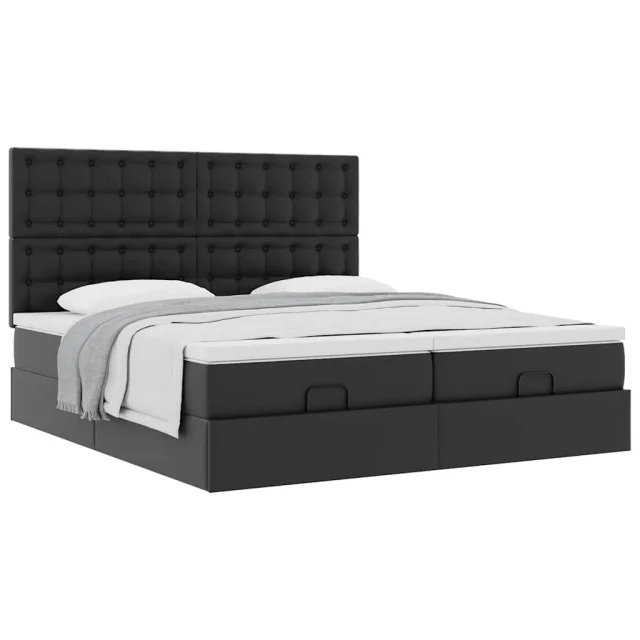 vidaXL Otomanski posteljni okvir z vzmetnicami črn 160x200cm um. usnje