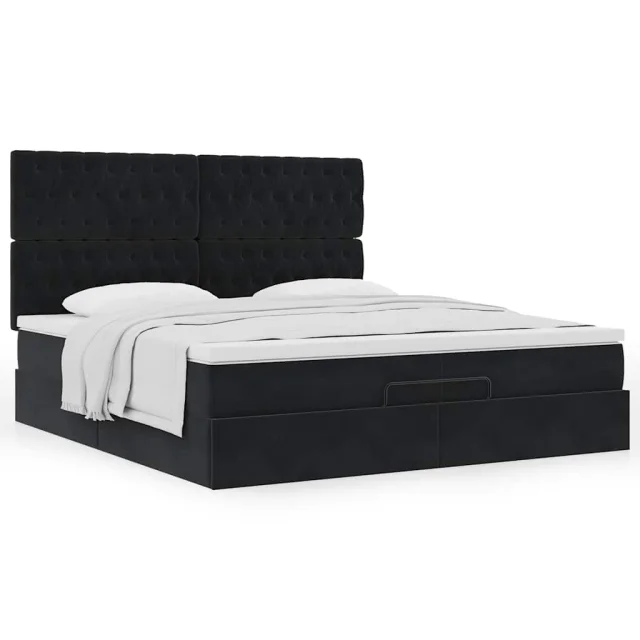 vidaXL Otomanski posteljni okvir z vzmetnicami črn 200x200cm žamet
