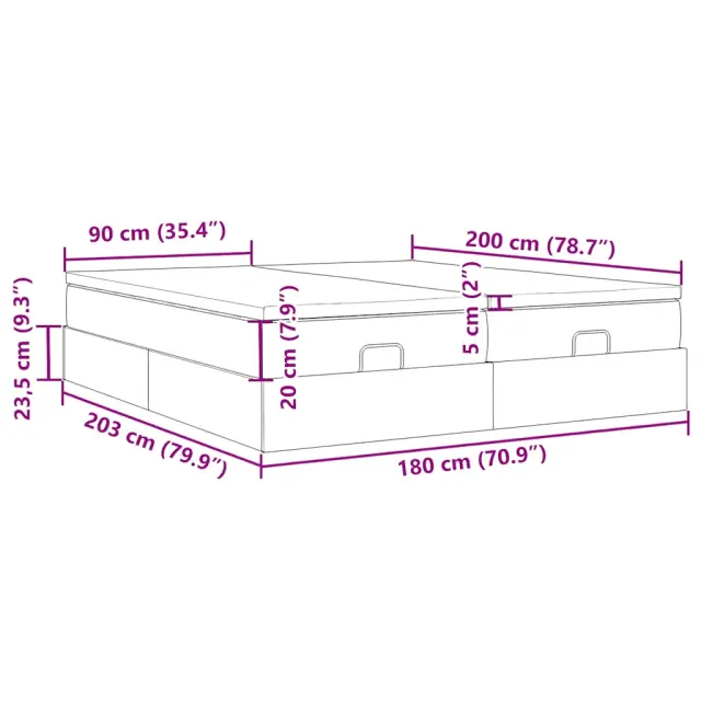 • Celotne dimenzije: 203 x 180 x 23,5 cm (D x Š x V)