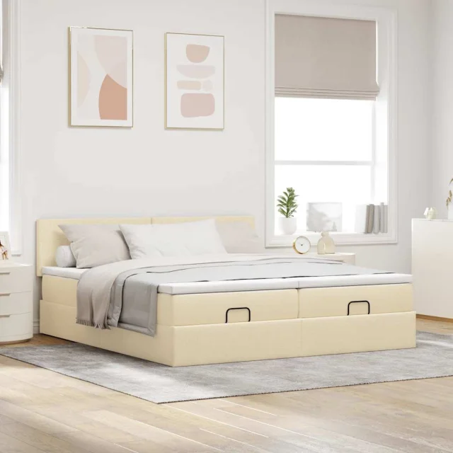 vidaXL Otomanski posteljni okvir z vzmetnicami krem 200x200 cm blago