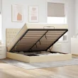 • Veliko prostora za shranjevanje pod posteljo: Zahvaljujoč hidravličnemu dvižnemu mehanizmu je pod posteljnim okvirjem na voljo veliko prostora za shranjevanje pod posteljo, kar povečuje prostor, ne da bi zavzemal dodatno talno površino. S preprostim potegom ročaja se podnožje z letvami gladko dvigne, tako da lahko hitro in brez napora poberete svoje predmete.